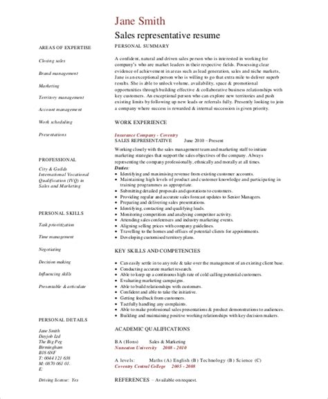 FREE 6+ Sample Sales Representative Resume Templates in MS Word PDF